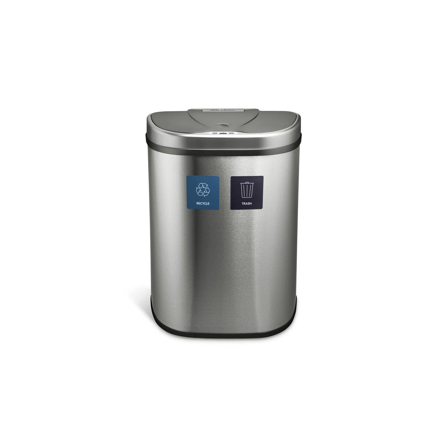 Simplify your eco-conscious lifestyle with the 50-Litre Oval Plus Series Recycling Autobin, offering two compartments in one sleek design for streamlined waste separation. A highly responsive infrared motion sensor opens the lid automatically within 0.3 seconds, ensuring contactless disposal and reducing germ transmission. The oval shape accommodates a large capacity while fitting neatly in kitchens or communal workspaces.