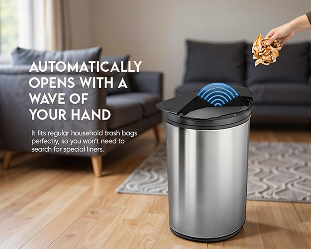 Touchless Motion Sensor: Opens in 0.3 seconds for hygienic disposal.